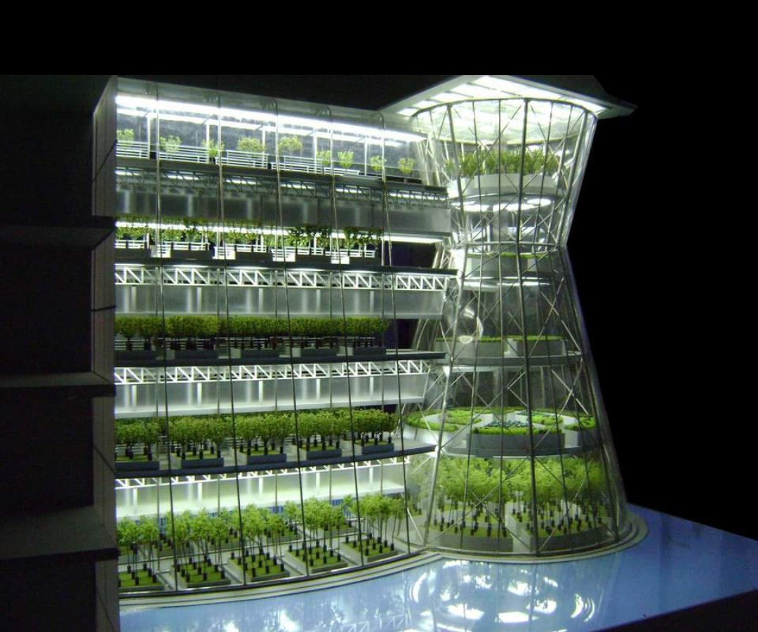 The vertical farm adopts the food chain principle in the natural ecosystem to reasonably match animals, plants and microorganisms to achieve the maximum utilization of energy. Vertical farm is a complete self-sufficient ecosystem, including not only crop farming, but also a series of transformation processes from crop production to waste management.